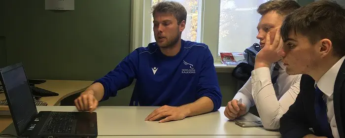 Toby Tremlett, academy physio at the Newcastle Falcons, visited the School last week to run a workshop with the Year 13 CTEC sport class who are currently studying their sports injuries and rehabilitation unit.