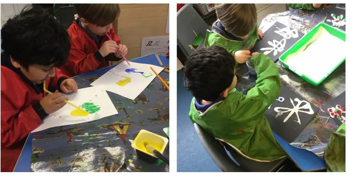 For another activity, boys had to drop watery paint on the page and then use a straw to blow the paint around the page, making it look like fireworks. The boys had a great time making many colourful designs.