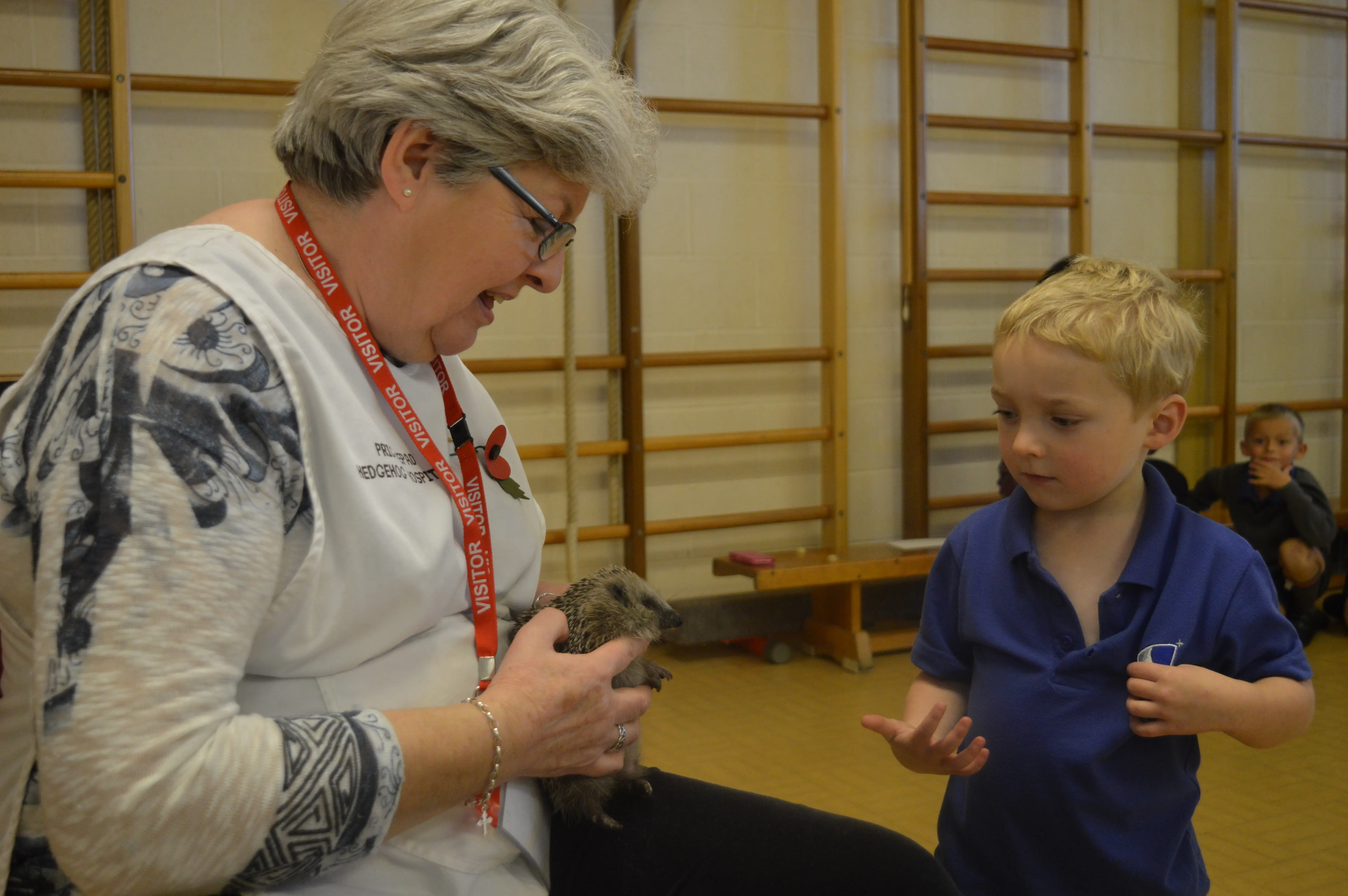 Moira from ‘The Pricklepad Hedgehog Hospital’ came to visit the Infant School on Wednesday. Sadly, hedgehogs are in danger of extinction during the next ten years and Moira explained to the boys about her vital work in saving sick and injured hedgehogs. She also told the boys what to do if they were to find a hedgehog out during the day as this usually means they are unwell. Moira brought a hedgehog named Rosie in to school to meet the boys and they were fascinated to see a hedgehog in close proximity.