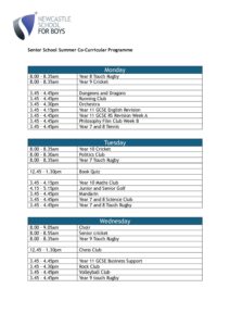 Senior School Summer Co-curricular