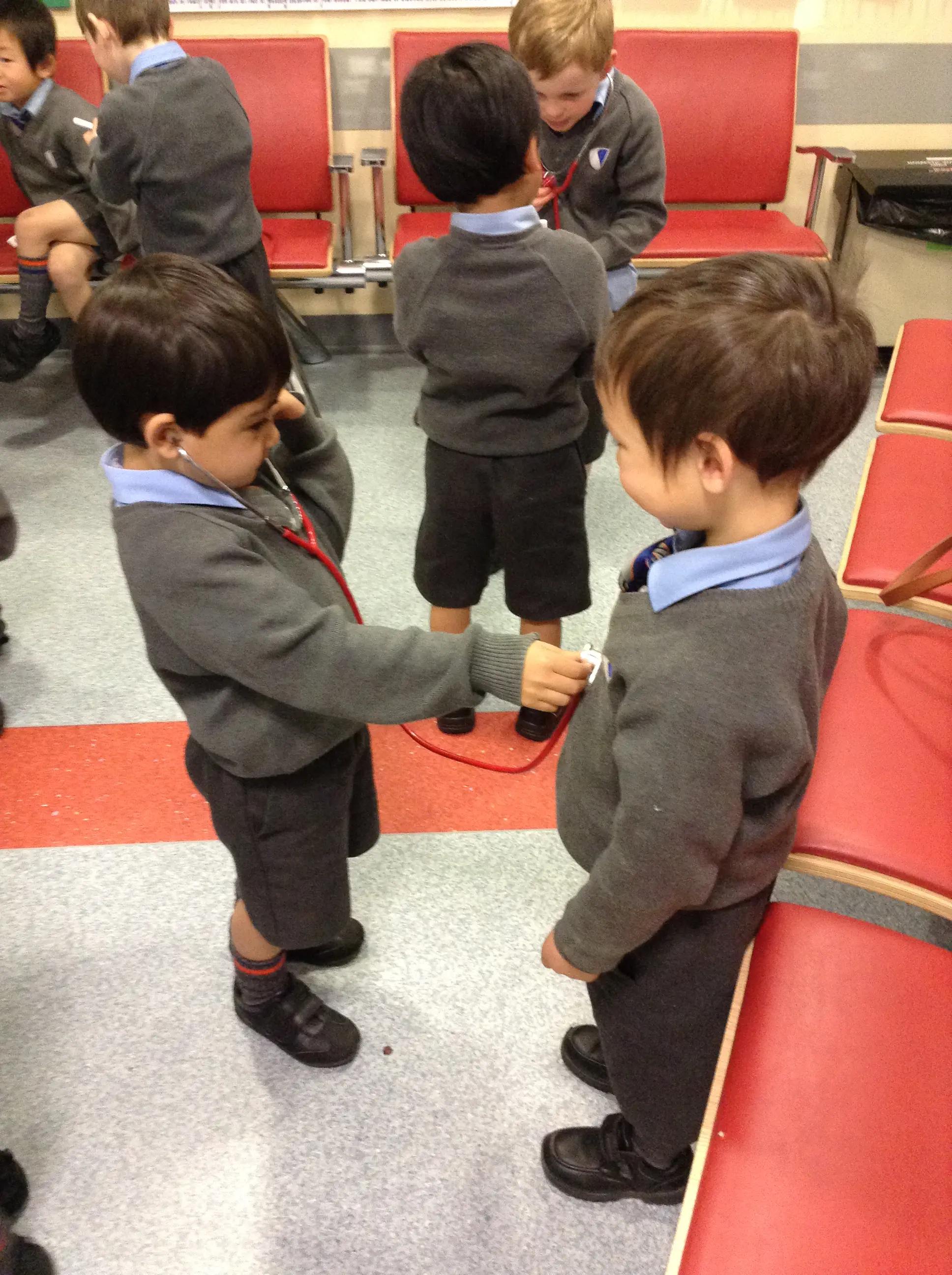 Amanda, who was looking after us for the visit was very impressed that the boys knew the names of quite a few bones! Then they enjoyed dressing up as surgeons, patients and nurses and examining each other with stethoscopes and torches before learning how to wash their hands like the hospital staff. We all came back to school with very clean hands.