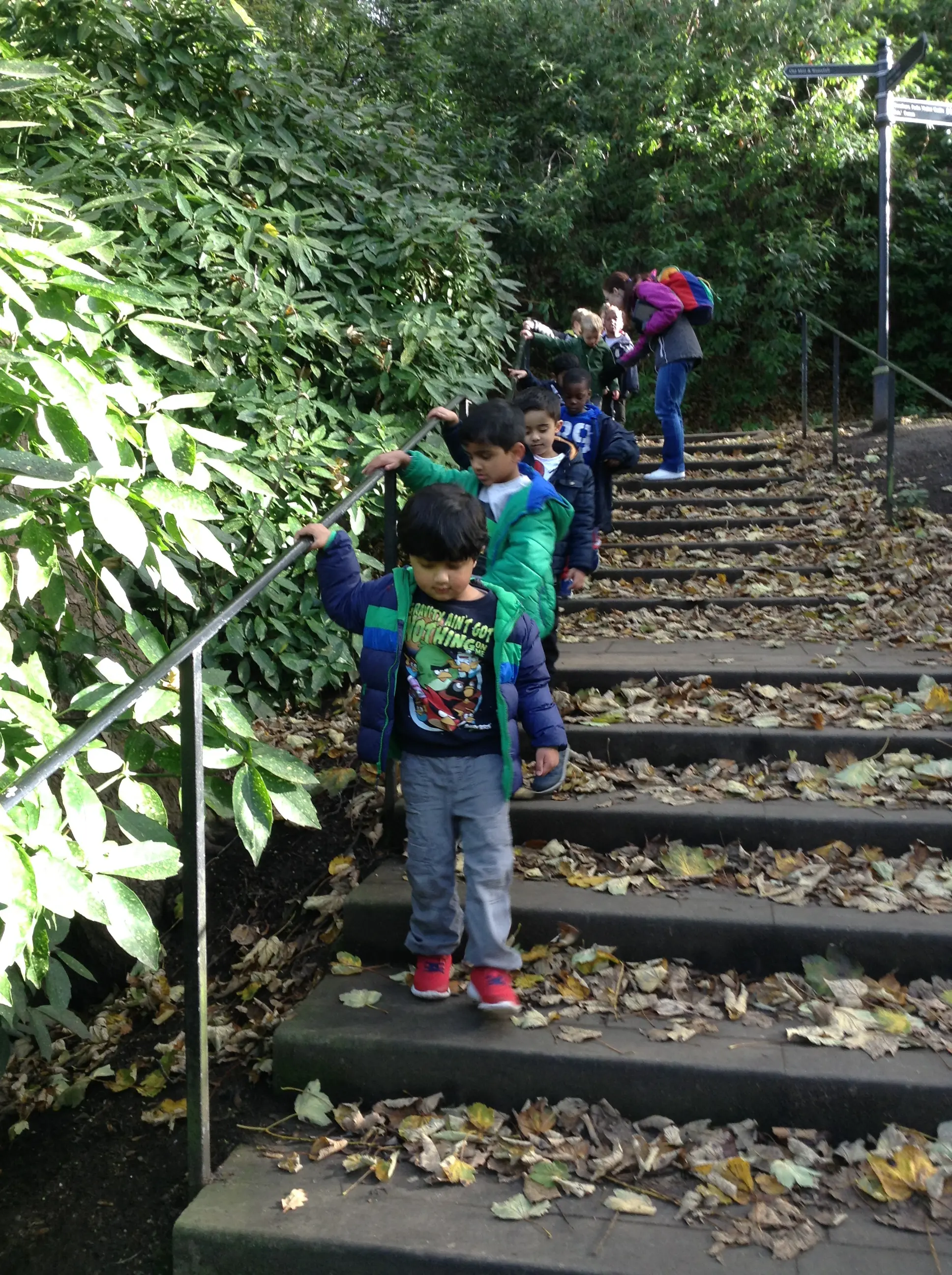 When the boys arrived at Jesmond Dene, they had snack time at the picnic tables before going for a walk to look for signs of Autumn. Walking through the echo tunnel, they had fun shouting out their names and listening to the echoes they made. They walked by the river and listened to the waterfalls and collected some leaves. They also walked through pets’ corner to see the birds and animals and more than three goats! They then sat down and each made a troll face from leaves. Some boys made theirs look very scary! It was then time to pretend to be goats and trolls crossing the “trip trap bridge.” It was great fun! The boys just had time to float their trolls under the bridge before it was time to come back to school for lunch.
