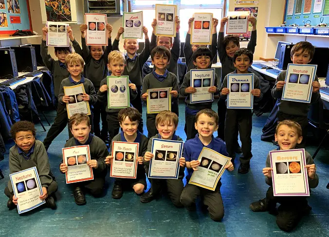Over the last few weeks, the class has been researching planets using the NASA Kids’ Club website as their launching pad and making notes of any facts they discovered.