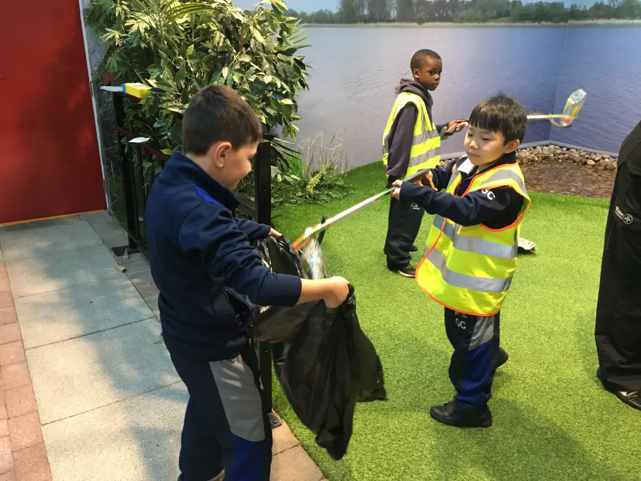 The boys spent time in a park learning all about the dangers of dropping litter, during which they had a go at dressing up and becoming litter pickers.