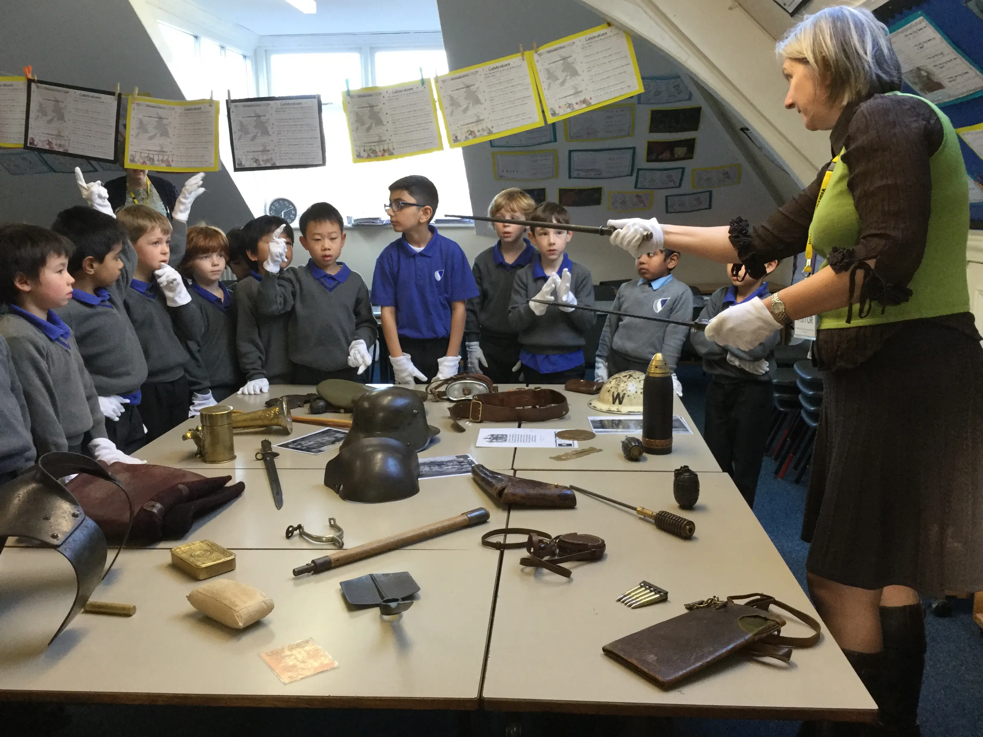 Year 2 had a fantastic day with the Durham Light Infantry using their collection of artefacts and taking part in a range of learning experiences. They started off completing a timeline activity where they ordered events in history to see where both World Wars came in relation to other events in history. The boys are starting to understand that dates are an important part of history.