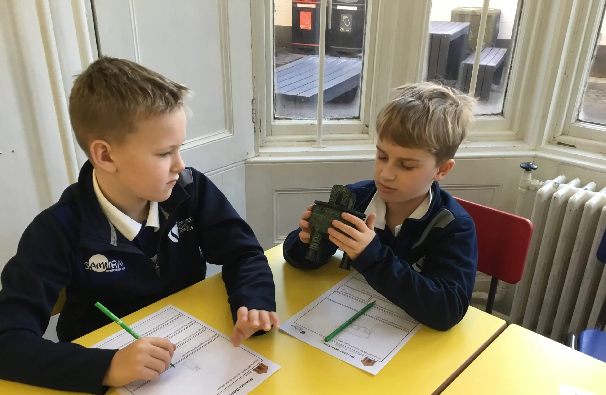 Following the archaeology work, the boys went into the Museum and worked in their house groups to complete a ‘gallery trail’ discovering various objects and their uses. “Most of us were born in the year of the snake,” discovered Henry S, “and some of us were born in the year of the horse.”